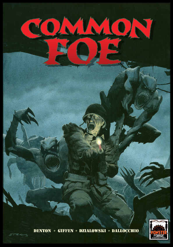 Written by legendary comic minds Keith Giffen (Lobo, Justice League) and Shannon Eric Denton (X-Men, Batman), with visceral, shadow-drenched artwork from JJ Dzialowski and Frederico Dallocchio, COMMON FOE plunges readers into a hellish nightmare set during one of the darkest chapters of human history—World War II’s Battle of the Bulge.