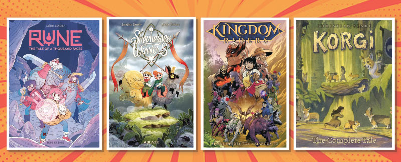 “The world of the story is filled with colorful characters and magical creatures, and the action is leavened with slapstick humor. The streamlined drawings and carefully laid out panels add to the sense of action but also slow the pace for more contemplative moments.”